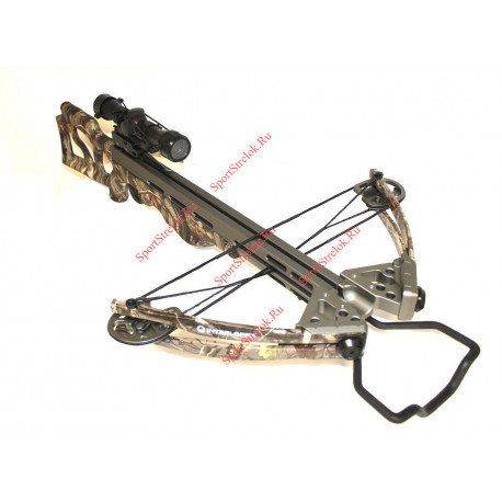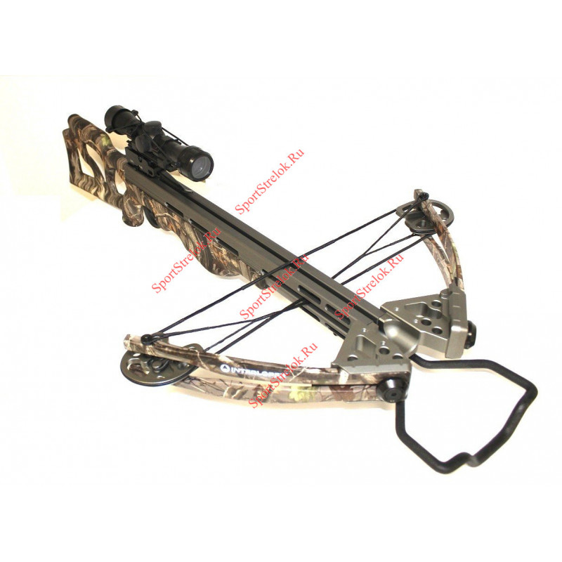 В комплекте: подствольный кивер, 4 карбоновые стрелы, 4х32 оптический прицел, натяжитель тетивы, воск для тетивы, ремень для переноски, набор ключей.